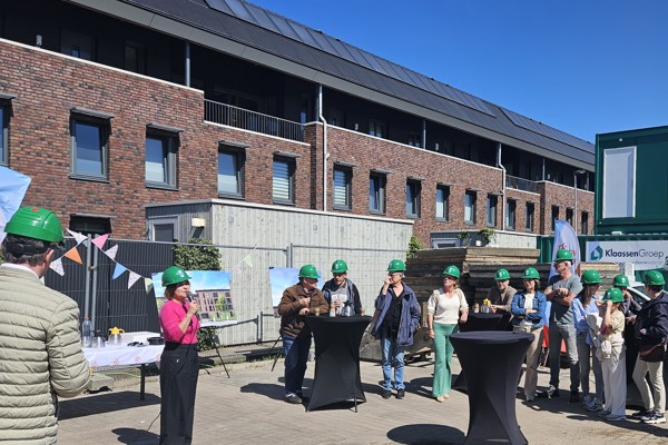 Er wordt hard gewerkt aan 48 nieuwe sociale huurappartementen aan de Emmalaan in Veenendaal. Op 23 april werd dit gevierd met bestuurders en omwonenden. Trees van Haarst, directeur-bestuurder van Veenvesters, Michel Menting, algemeen directeur van de KlaassenGroep en wethouder Engbert Stroobosscher plaatsten symbolisch een eerste lijmblok, het fundament voor de toekomstige kalkzandstenen wanden.