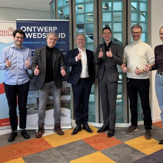 Samen met de nieuwe huurders is woensdag 25 februari feestelijk stilgestaan bij de oplevering van de sociale huurappartementen aan de Bakker van Voorthuizenlaan. Ontwikkelende bouwer Dura Vermeer realiseerde in opdracht van Veenvesters een complex met 40 sociale huurappartementen. De bouw startte eind november 2024 en is nu afgerond. Tijdens het feestelijke moment ontving één van de bewoners uit handen van wethouder Engbert Stroobosscher, Gosse Dousma (manager Vastgoed van Veenvesters) en Mike Drupsteen, directeur woningbouw van Dura Vermeer, een symbolische sleutel.