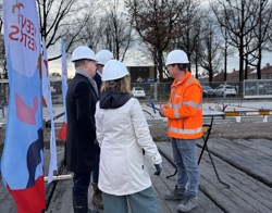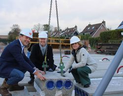 De bouw van 64 nieuwe sociale huurappartementen aan de Dennenlaan in Veenendaal heeft een belangrijke mijlpaal bereikt. Wethouder Engbert Stroobosscher, Veenvesters-directeur Trees van Haarst en Commercieel directeur Plegt-Vos Oost Jauke Klein legden vandaag samen de symbolische een vloerplaat voor de begane grond. Daarmee wordt weer een stap gezet in de bouw van deze nieuwe, duurzame woningen.