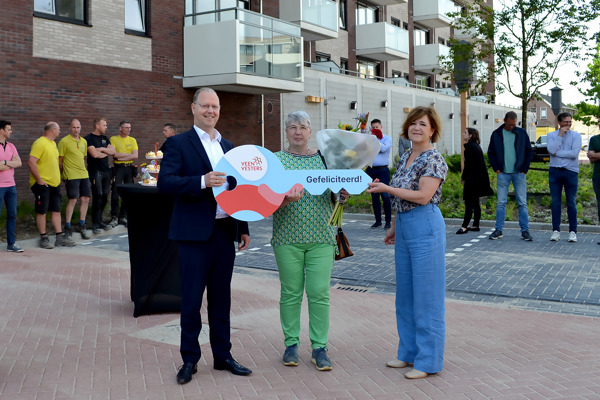 In de eerste twee weken van juli ontvangen alle nieuwe bewoners de sleutels van hun nieuwe woning. Als voorproefje op de officiële intrek, overhandigden wethouder Engbert Stroobosscher, directeur-bestuurder van Veenvesters Trees van Haarst en directeur Frank van Woerden van KUDO symbolisch de sleutels aan de nieuwe bewoonster.