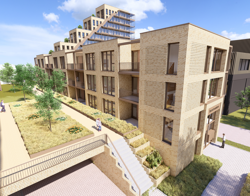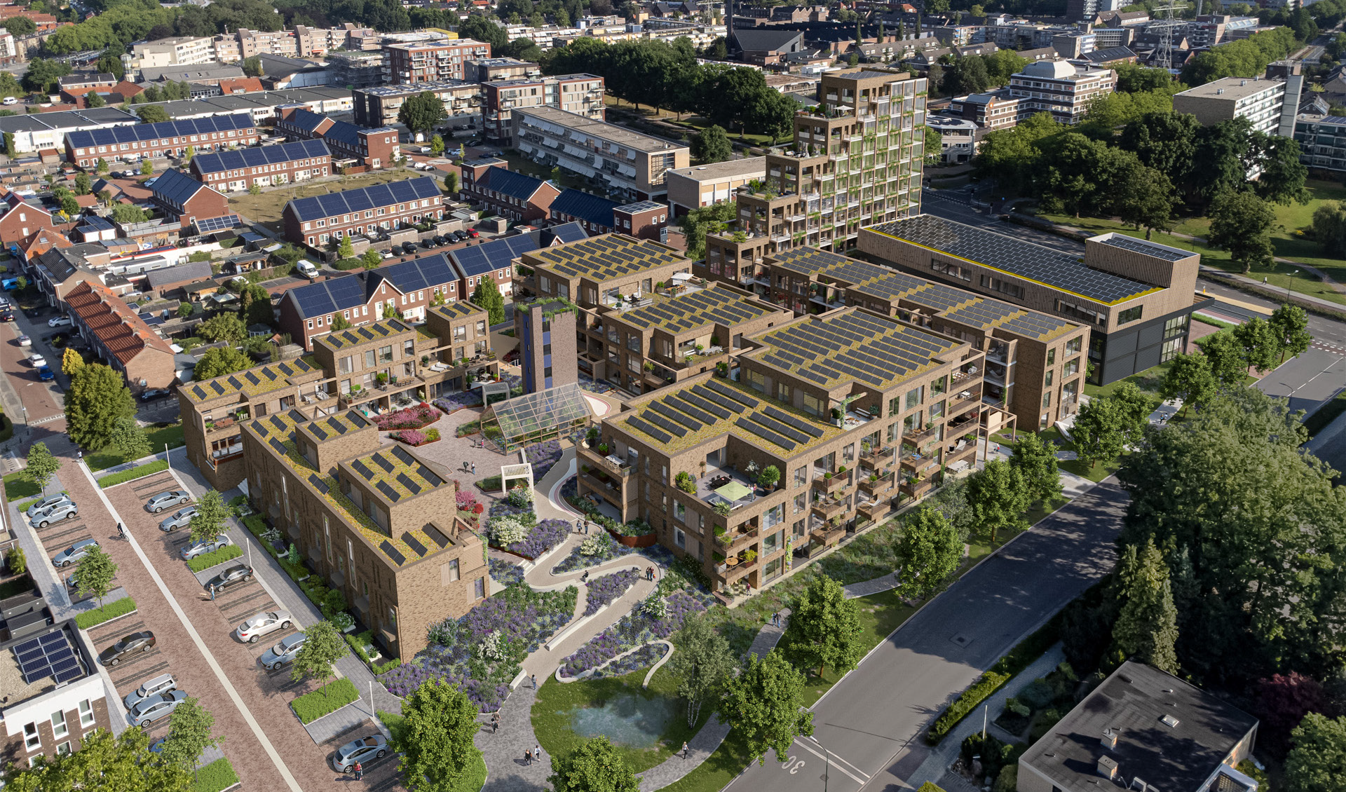 In het gebied worden in totaal 139 woningen gerealiseerd. Er komt één appartementengebouw met 18 sociale huurwoningen van Veenvesters. Deze woningen zijn verdeeld over de eerste, tweede en derde verdieping. Alle appartementen zijn 60,2 m groot en hebben een balkon. Elk appartement heeft 2 slaapkamers. Op de begane grond bevinden zich de bergingen, fietsenstalling en de hoofdentree. Op dezelfde hoogte als de eerste verdieping bevindt zich een gezamenlijke binnentuin.