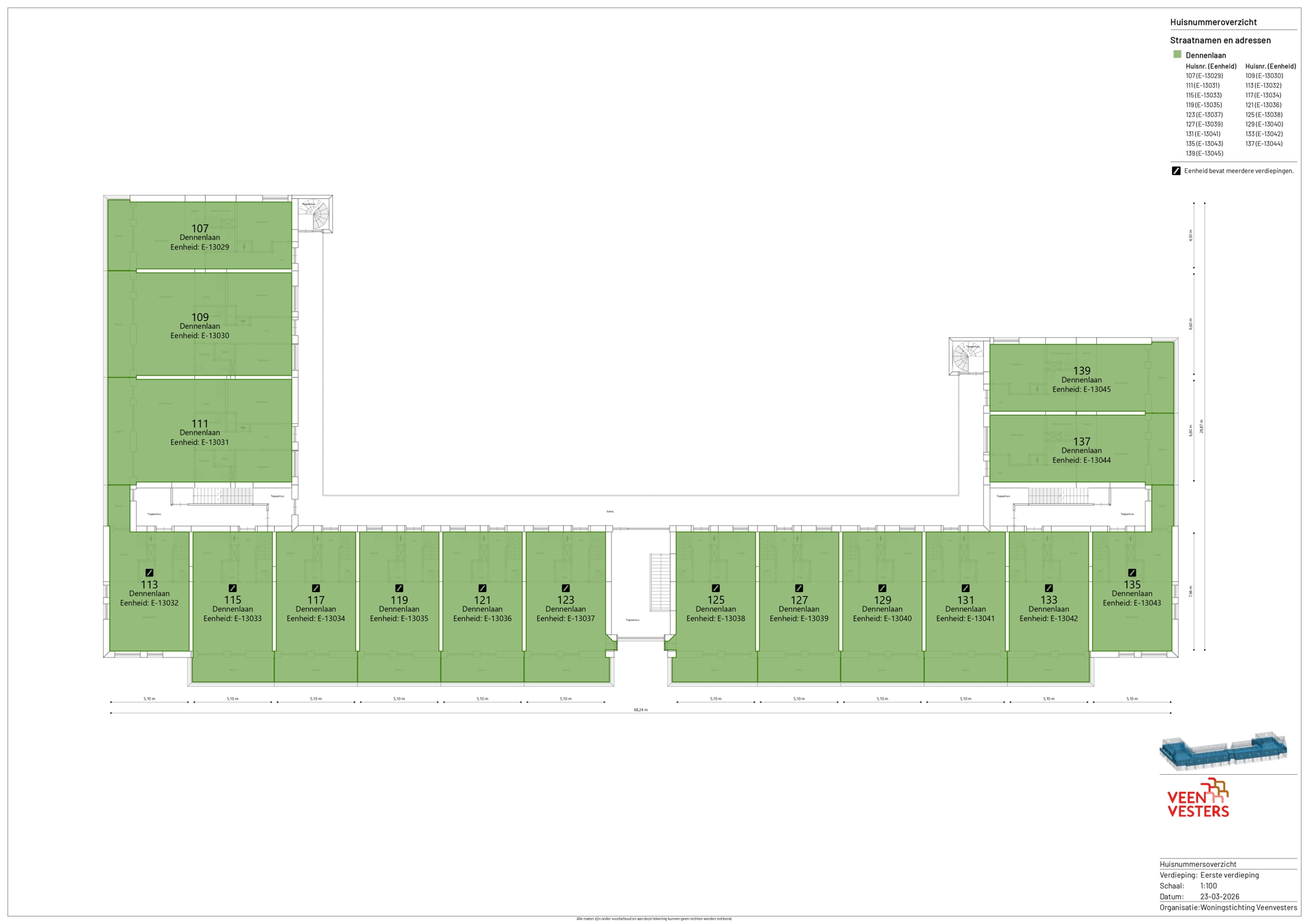 | 1e verdieping | 1e verdieping | 107, 109, 111, 113, 117, 119, 121, 123, 125, 127, 129, 131, 133, 135, 137, 139, |