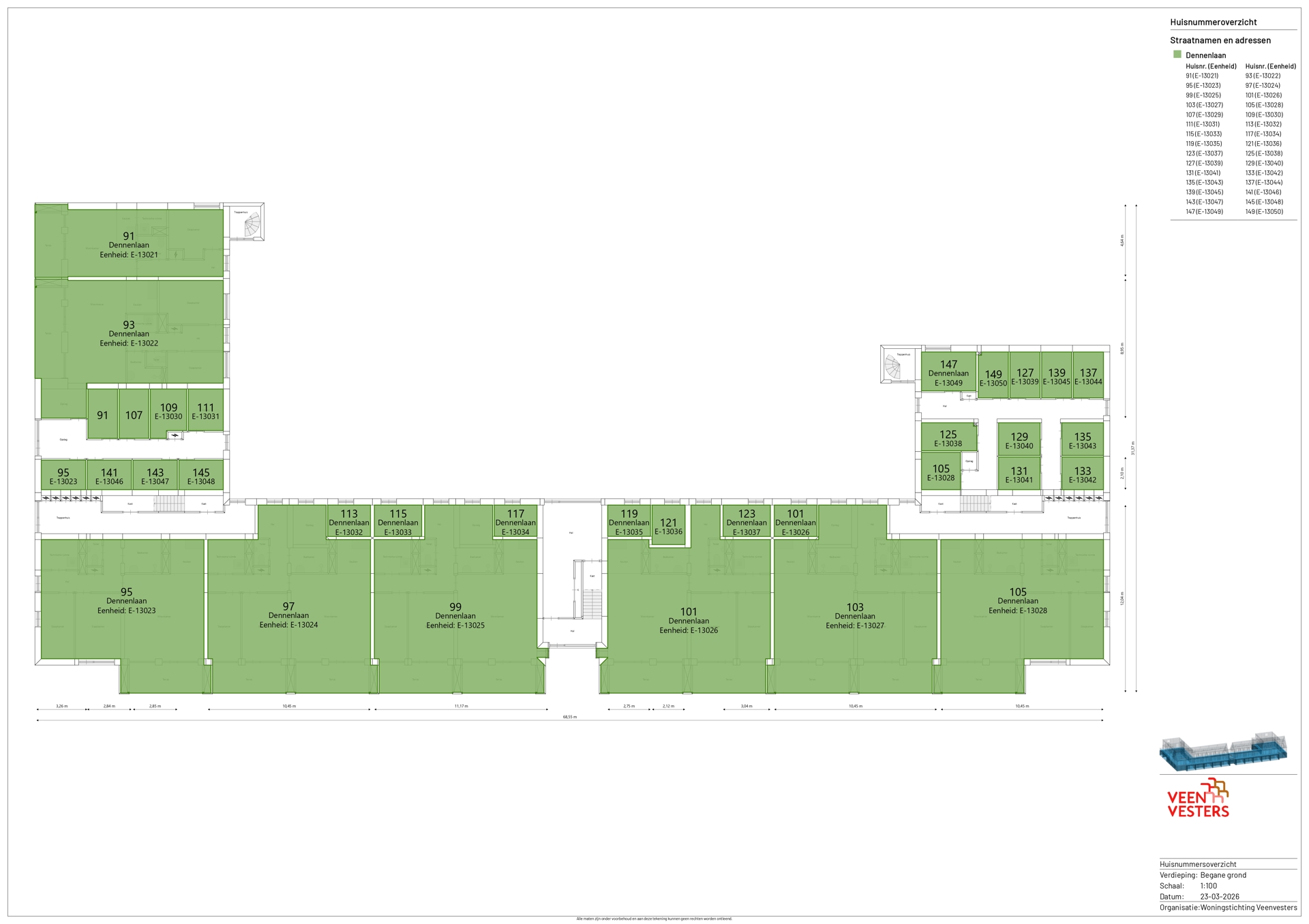 | Begane grond | Begane grond | 91, 93, 95, 97, 99, 101, 105 |