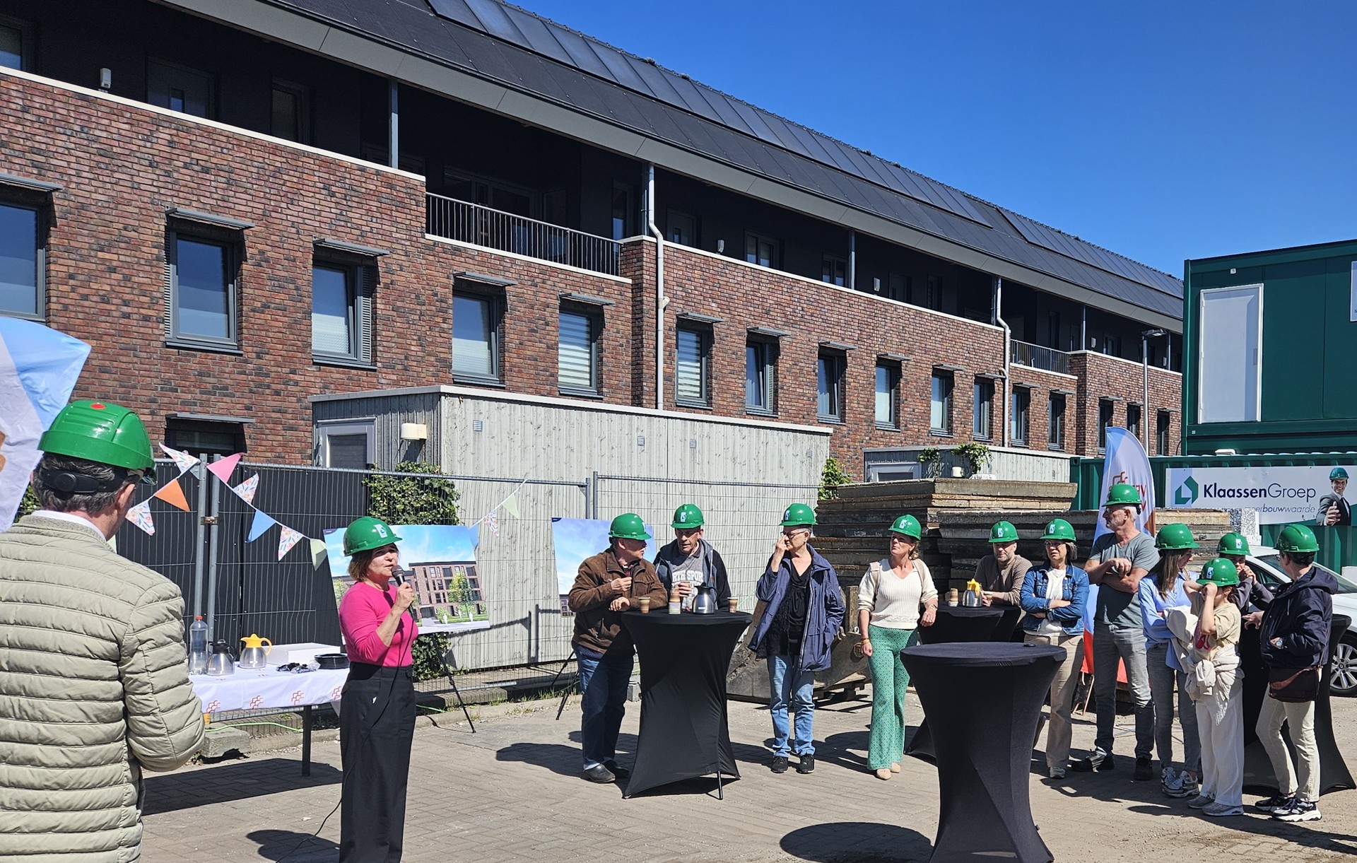 Er wordt hard gewerkt aan 48 nieuwe sociale huurappartementen aan de Emmalaan in Veenendaal. Op 23 april werd dit gevierd met bestuurders en omwonenden. Trees van Haarst, directeur-bestuurder van Veenvesters, Michel Menting, algemeen directeur van de KlaassenGroep en wethouder Engbert Stroobosscher plaatsten symbolisch een eerste lijmblok, het fundament voor de toekomstige kalkzandstenen wanden.
