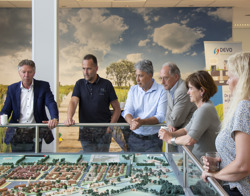 De eerste palen voor het nieuwe appartementencomplex op Eiland K in Veenderij, Veenendaal-Oost zitten in de grond. Woningcorporatie Veenvesters en ontwikkelende bouwer Trebbe vierden afgelopen maandag officieel de start van deze bijzondere ontwikkeling. Het nieuwe appartementencomplex biedt straks plaats aan 32 duurzame en betaalbare sociale huurappartementen.
