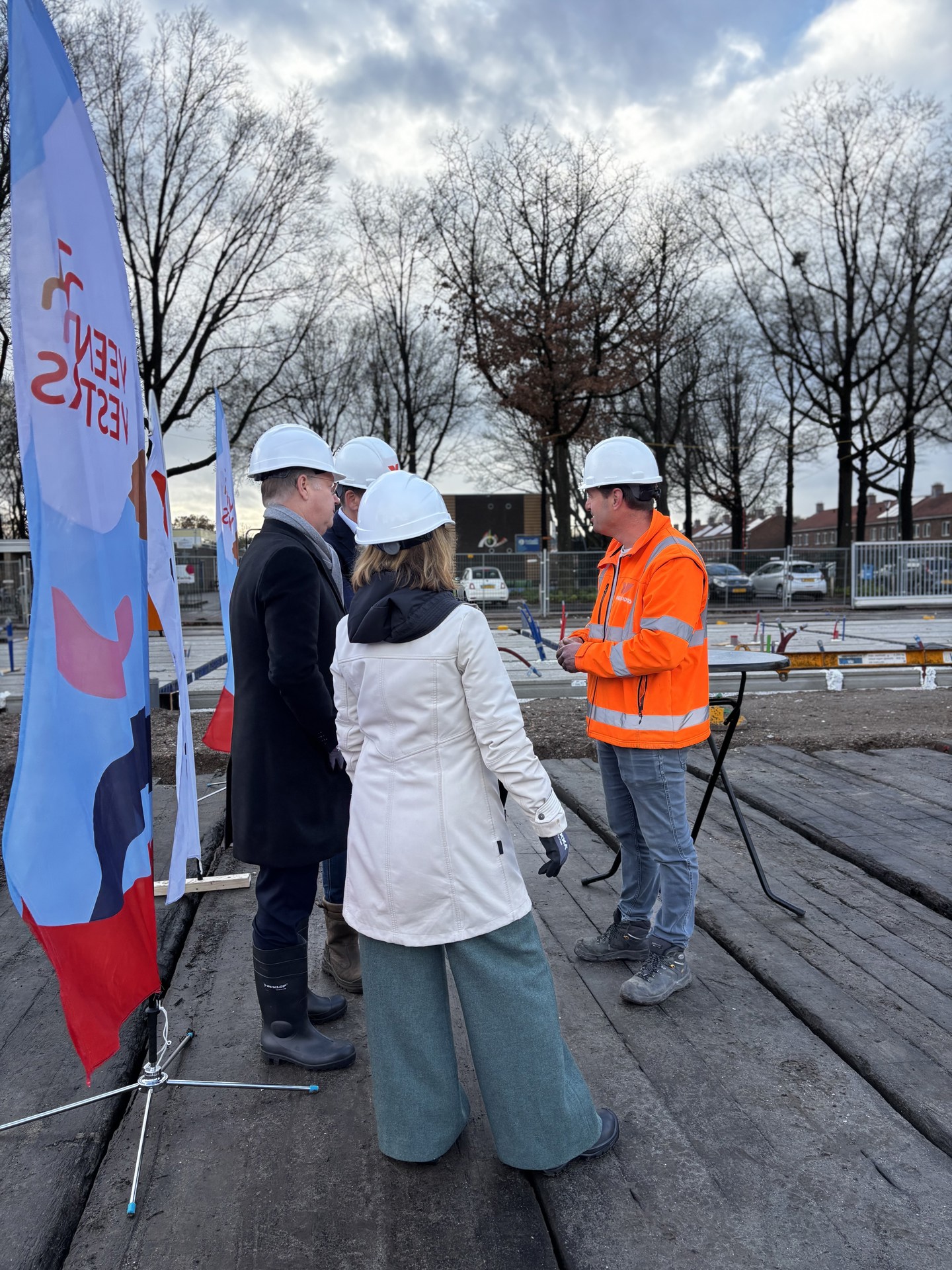 Voor Trees van Haarst is het moment extra betekenisvol. Terwijl Veenvesters hard werkt om in tijden van woningnood nieuwe woonruimte te realiseren, ziet zij hoe projecten steeds vaker vertraging oplopen. “Dat baart me zorgen,” zegt ze. “Juist nu elke nieuwe woning telt. Daarom ben ik des te trotser dat we hier vandaag staan: er wordt gebouwd, en dat is goed nieuws voor Veenendaal.”
