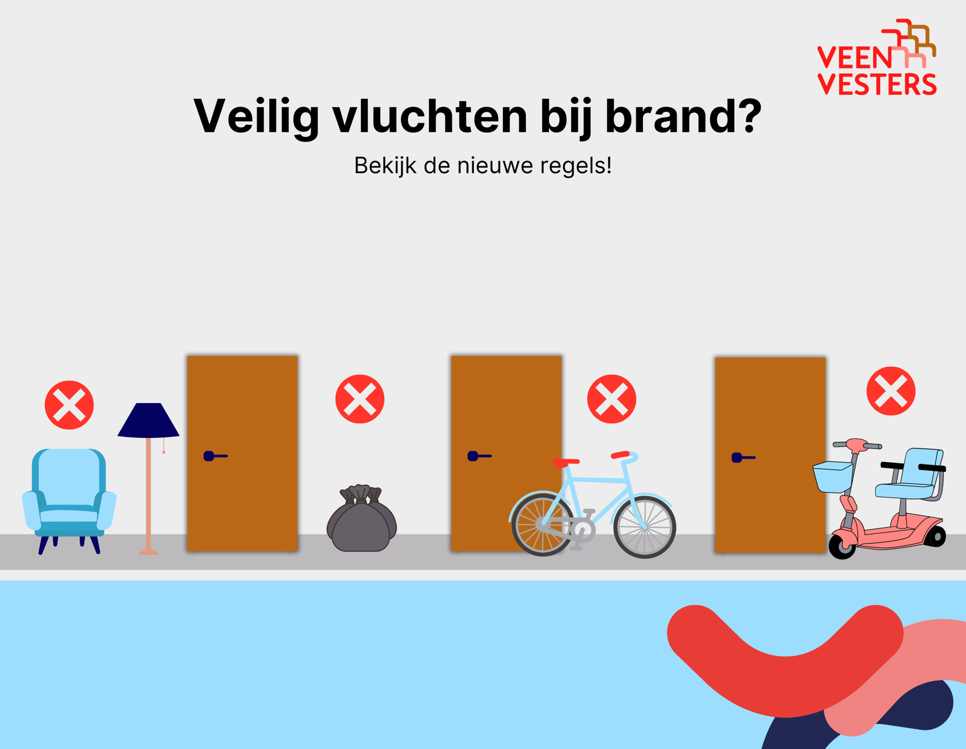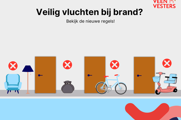 We willen er samen voor zorgen dat de algemene ruimtes vrij en veilig blijven. Daarom komt Veenvesters vanaf half oktober regelmatig langs om te kijken of de vluchtroutes en algemene ruimtes vrij zijn van spullen. Dit is belangrijk voor uw veiligheid. En die van uw buren.