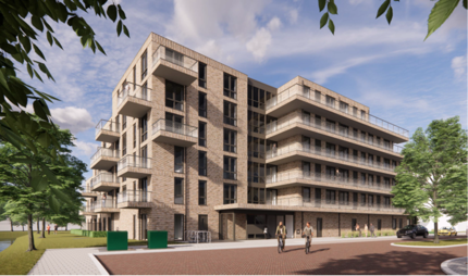 Het bovenstaande beeld is een impressie van de huurappartementen aan de Bakker van Voorthuizenlaan. Het uiteindelijke plan kan afwijken.