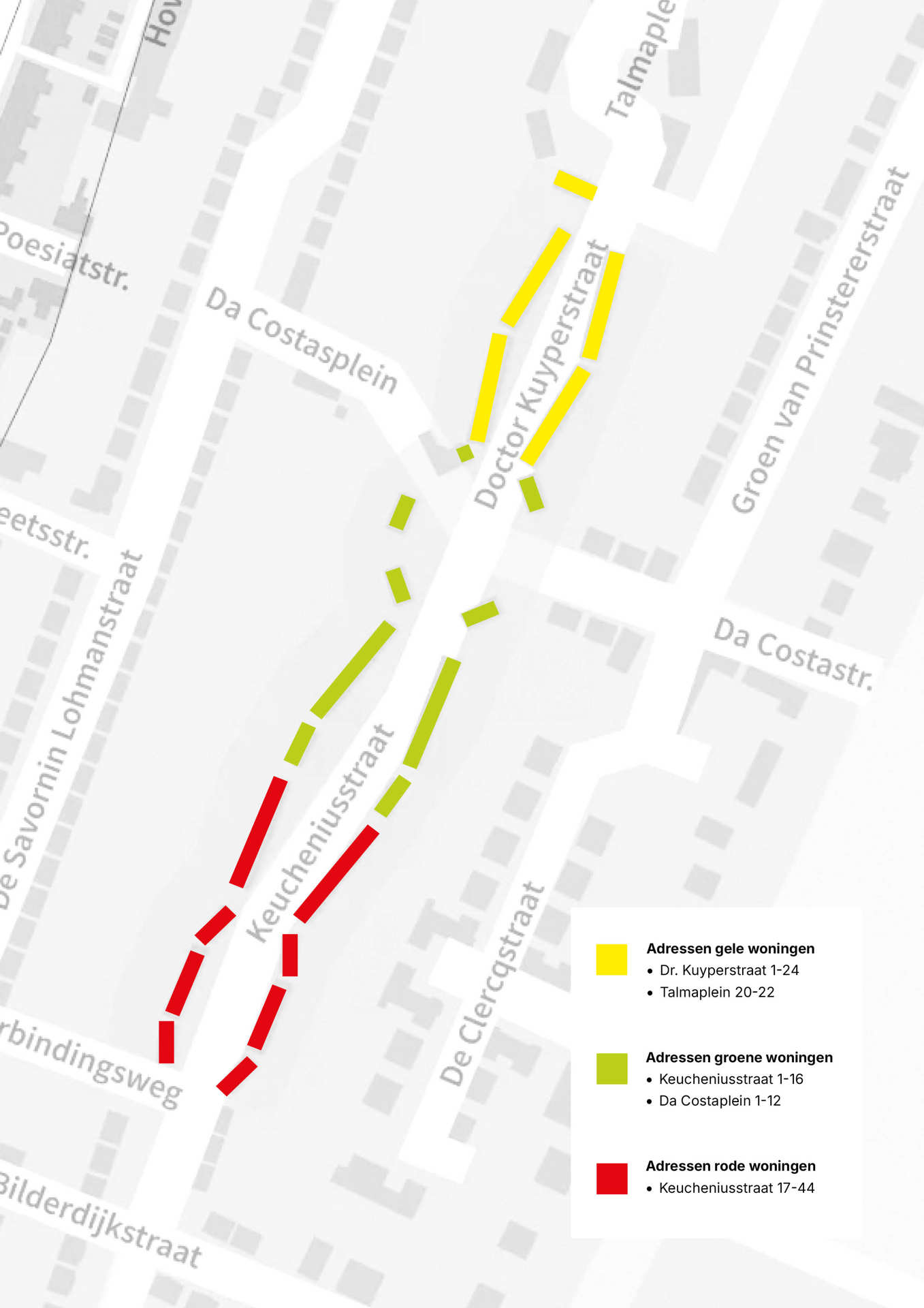 - Fase 3: Keucheniusstraat 17 – 44 | op een later moment rode woningen.