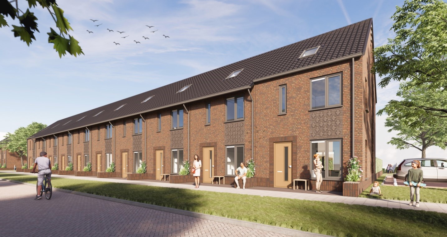 Aannemer Roosdom Tijhuis heeft de woningen snel opgeleverd. Die snelheid heeft alles te maken met de keuze voor ‘gevelklaar’ bouwen. Dit betekent dat wanden in de fabriek worden gemaakt en kant-en-klaar aankomen op de bouw. Compleet met kozijnen en goed geïsoleerd. Zo gaat de bouw snel en is niet afhankelijk van het weer.